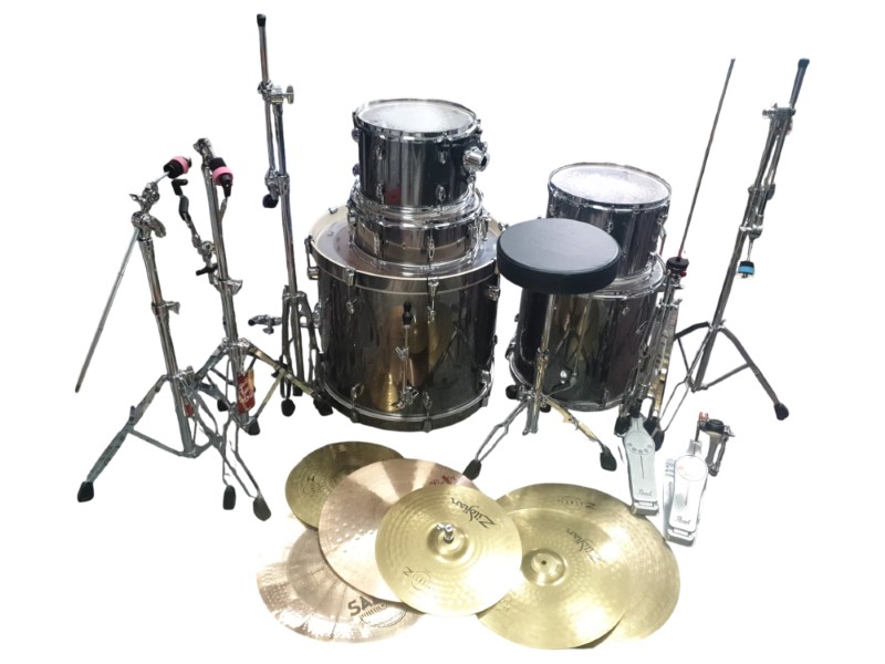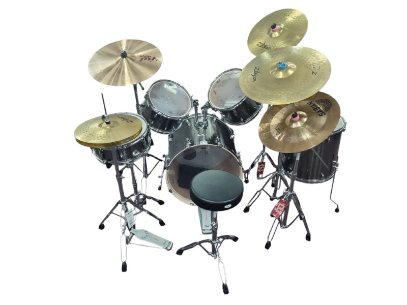 Model Name: Snare, Floor Tom, 2 X Mounted Tom, Zildjian 16" Crash, Zildjian 20" Ride, 14" High Hat ,Paistie 18" Heavy Crash, Sabian 18" Chinese