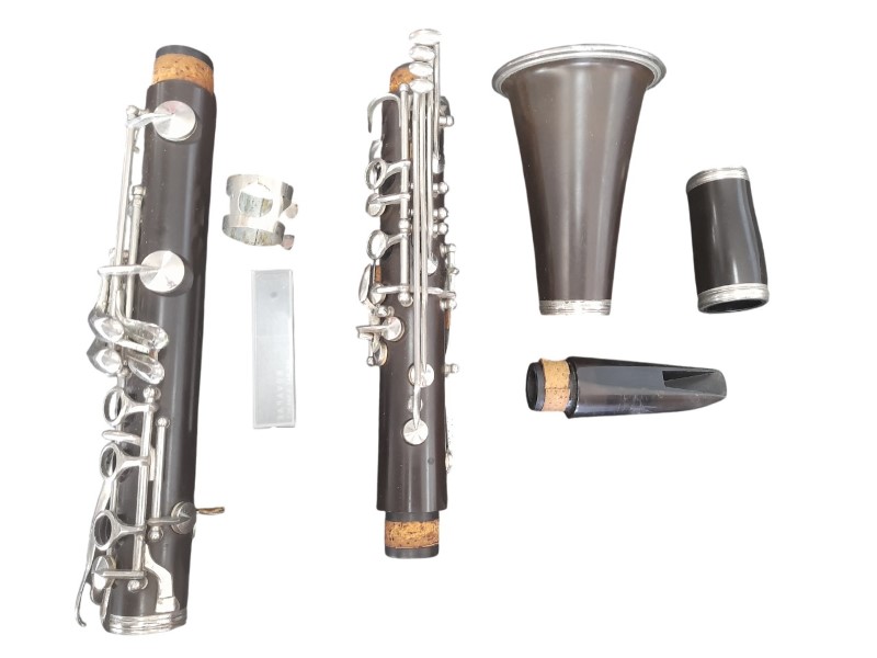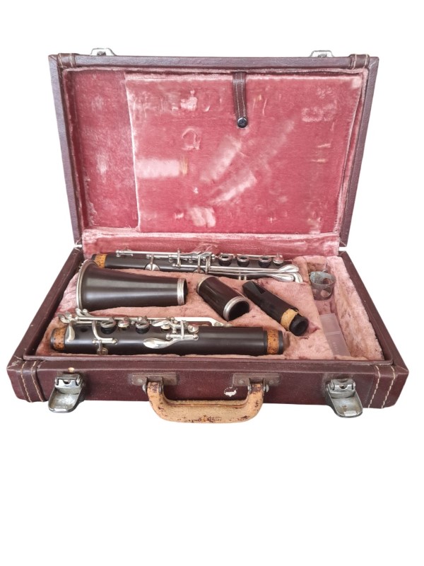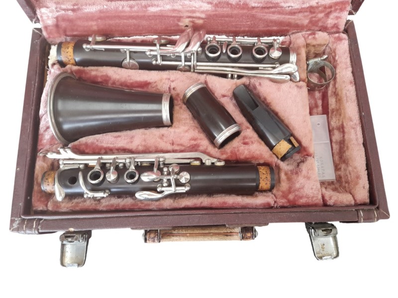 This student clarinet is a reliable wind instrument suitable for beginners and experienced players alike. Despite its heavy wear, it remains fully functional and ready to produce rich, resonant tones. The included case ensures convenient transportation and storage.