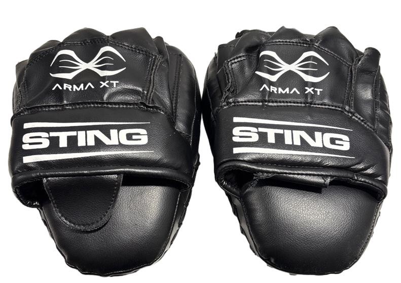 This pair of STING ARMA XT focus mitts are a versatile training tool for athletes and boxers. Designed to withstand rigorous use, these mitts feature durable construction and padded palms to cushion impacts during training sessions. The contoured shape provides a secure grip, allowing for precise target practice and technique refinement. Whether you're a seasoned fighter or just starting your fitness journey, these mitts can elevate your workout and help you reach your full potential.