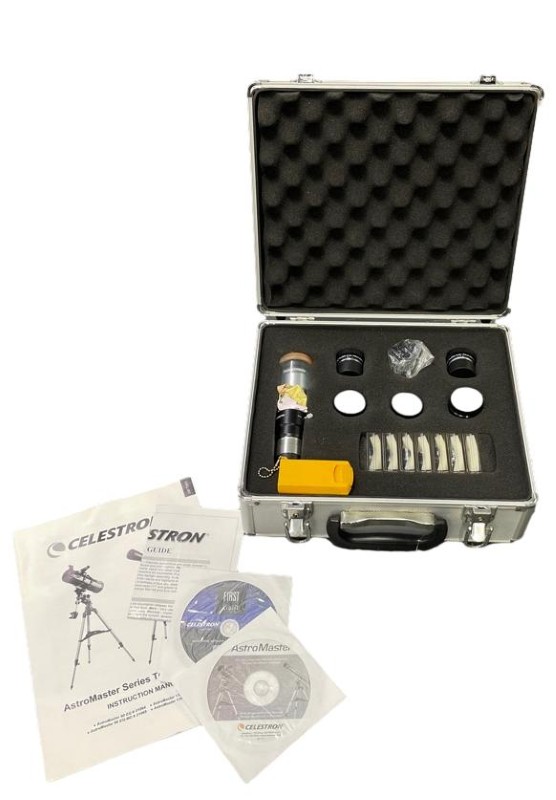 Accessories: Adjustable, full height steel tripod with Celestron motor Drive-astromaster, powerseeker.
