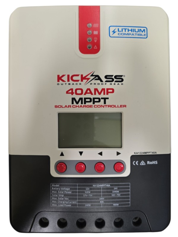 This high-performance solar charge controller from KICKASS is a versatile and reliable choice for powering your outdoor adventures. Featuring a 40AMP MPPT design, it efficiently manages the energy from your solar panels, ensuring your devices stay charged even in remote locations. With its sturdy construction and user-friendly controls, this controller is built to withstand the rigors of life off the grid.