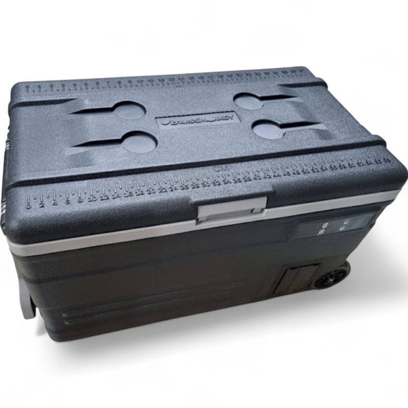 74L Brass Monkey Portable Fridge/Freezer With Solar Charger Input Plus Handles + Wheels And Removable Battery Option