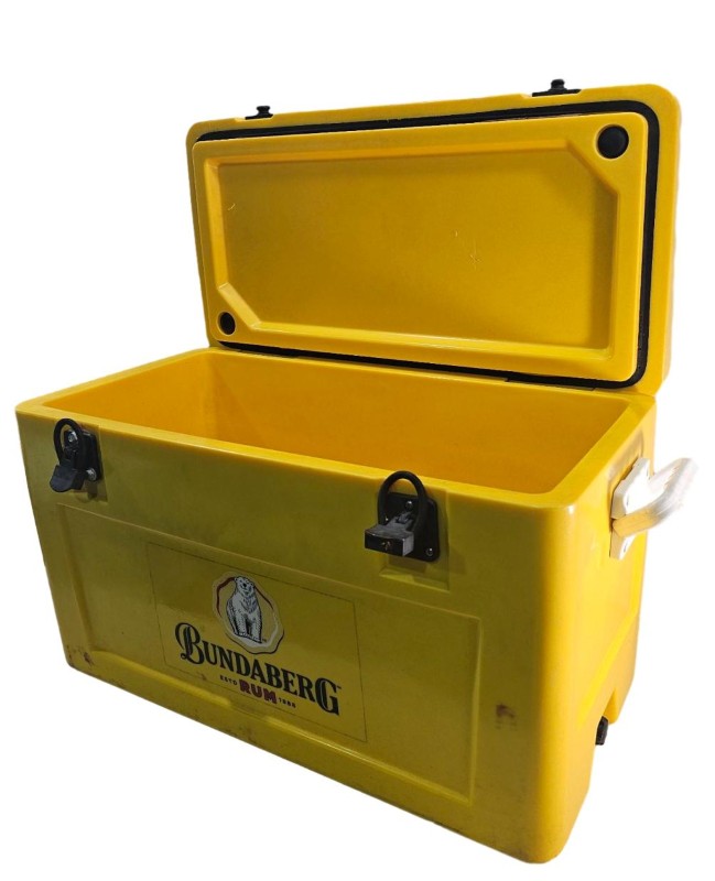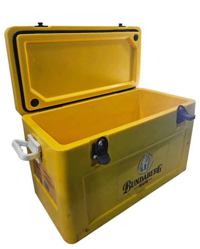 This vintage Bunderberg rum-branded 47L yellow esky is a reliable companion for your outdoor adventures. Its durable construction and generous capacity make it ideal for keeping your food and beverages chilled during camping trips, picnics, or tailgating events. With its well-used but still functional condition, this esky offers excellent value for money as a secondhand purchase.
