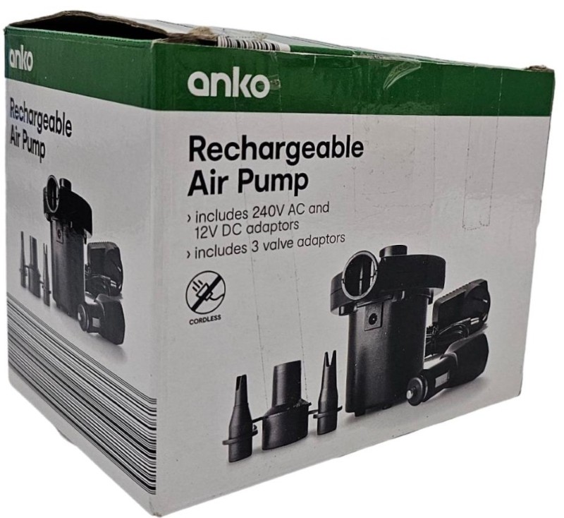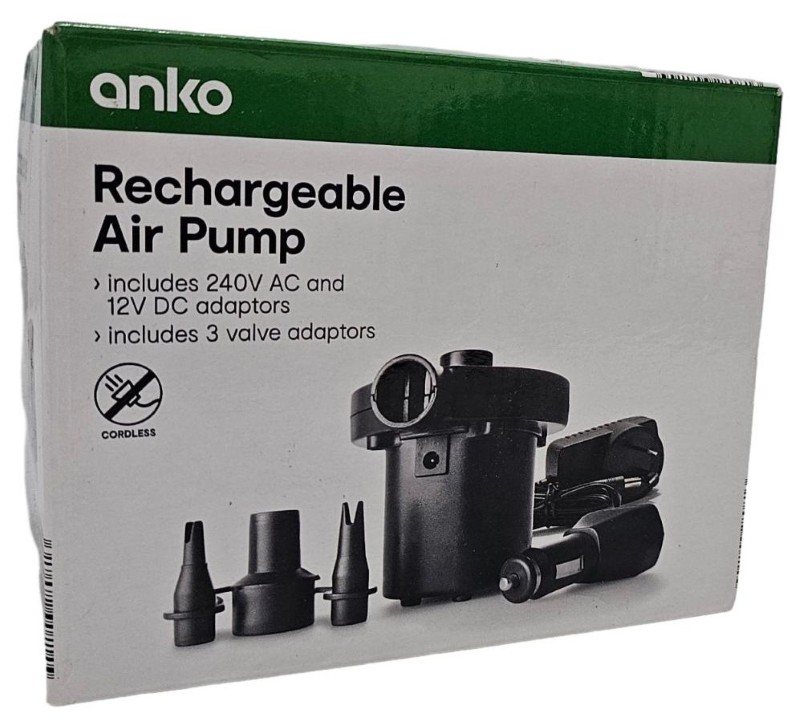This rechargeable air pump from Anko is a versatile and convenient accessory for your camping and travel needs. With its 240V model, it can quickly inflate and deflate a range of air mattresses and other inflatables. Compact and easy to use, this air pump is an essential item for your next outdoor adventure.