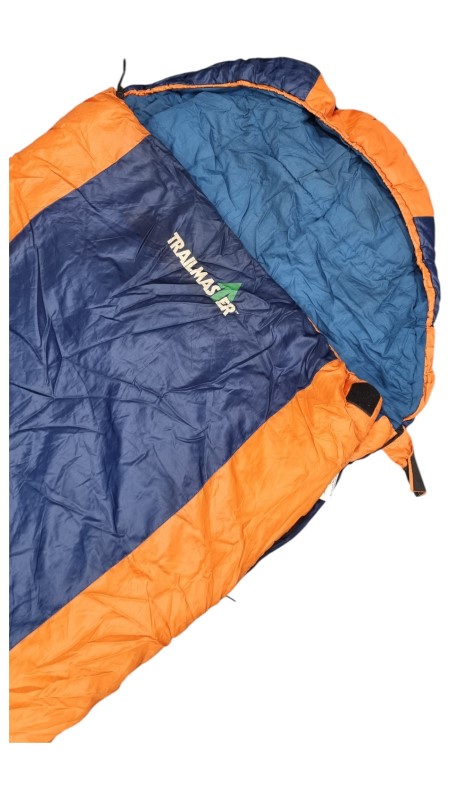 This Trailmaster Hooded Style Sleeping Bag is a reliable and versatile option for your camping and travel adventures. Designed with your comfort in mind, it features a cosy hood to keep you warm on chilly nights. While it shows signs of previous use, the sleeping bag remains in working condition, ready to provide a restful night's sleep under the stars.