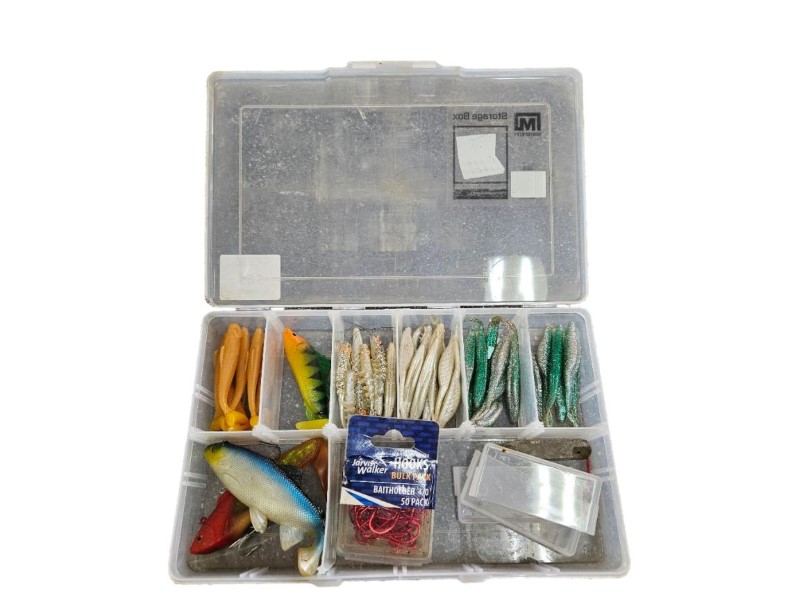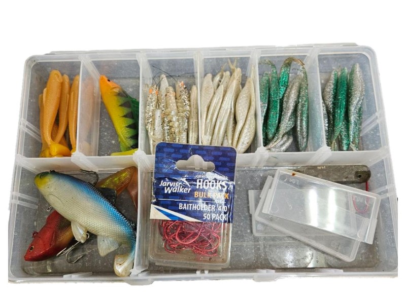 This versatile tackle box is perfect for the avid angler. Featuring an assortment of high-quality lures, it provides everything you need to reel in your next big catch. The box has been well-used, showcasing its durability and reliability in the field.