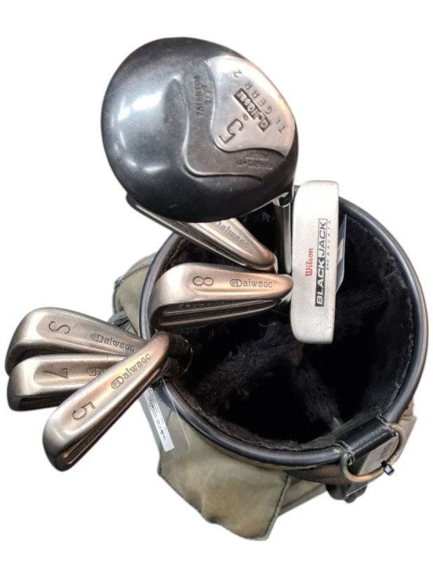This PRO SELECT BAG X7 ASSORTED CLUBS golf set is a practical choice for the avid golfer. Featuring 7 clubs, it provides a versatile range of options to tackle any course. The set exhibits signs of heavy use, but remains fully functional and ready to hit the green.