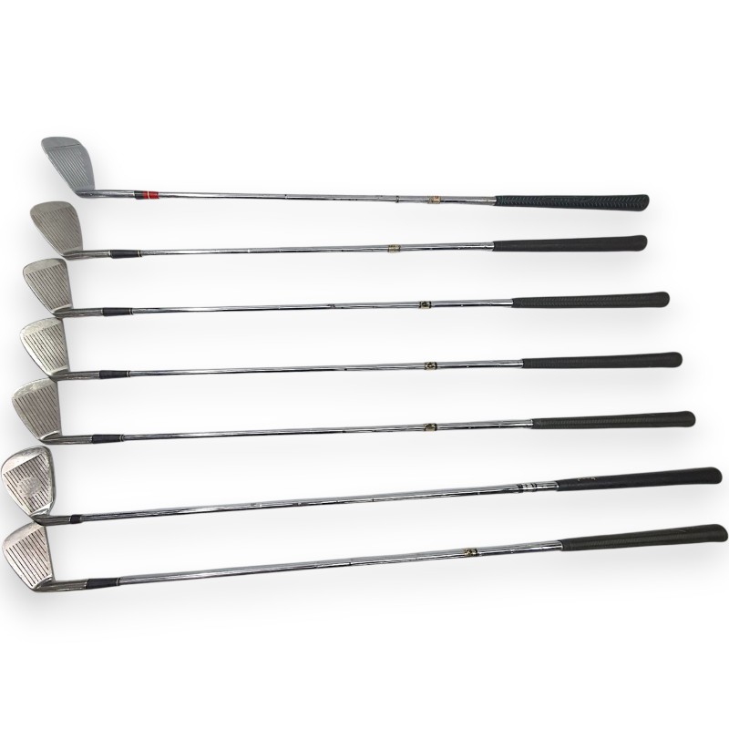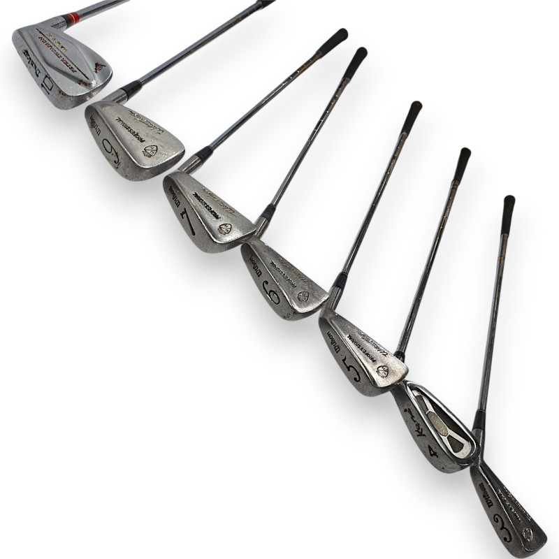 This high-quality Wilson golf set is a fantastic choice for the avid golfer. With 12 clubs, it offers a comprehensive range of options to tackle any course. The set has been well-used over time, showcasing the signs of an active lifestyle on the green. Despite the heavy wear, the clubs remain functional and ready to provide an enjoyable golfing experience.