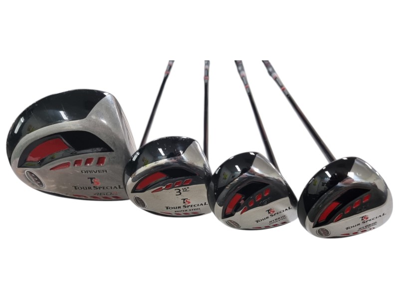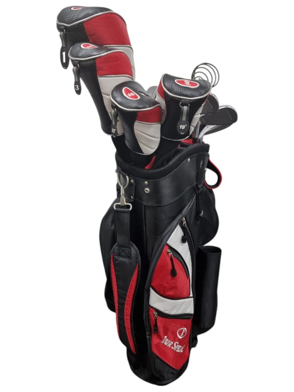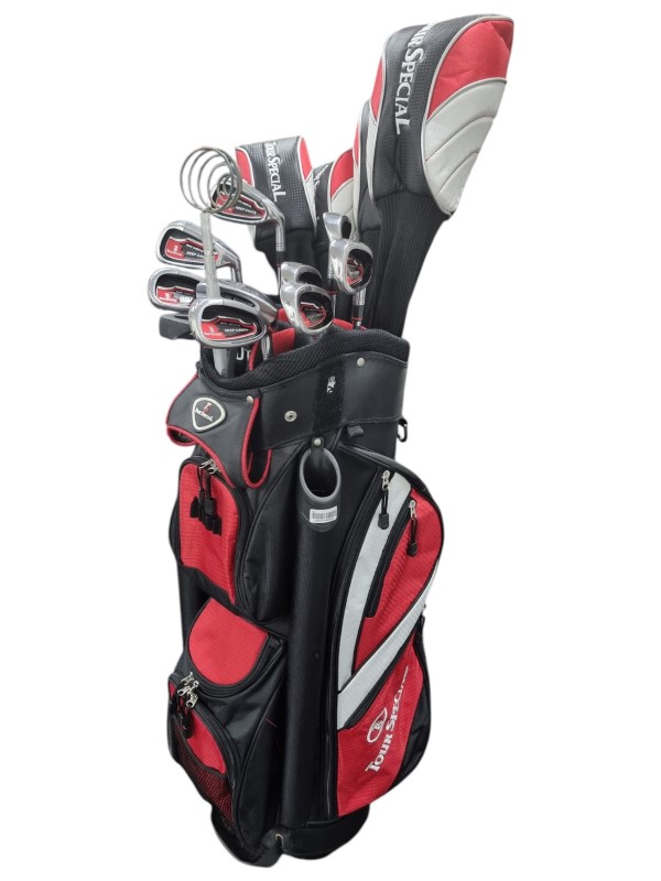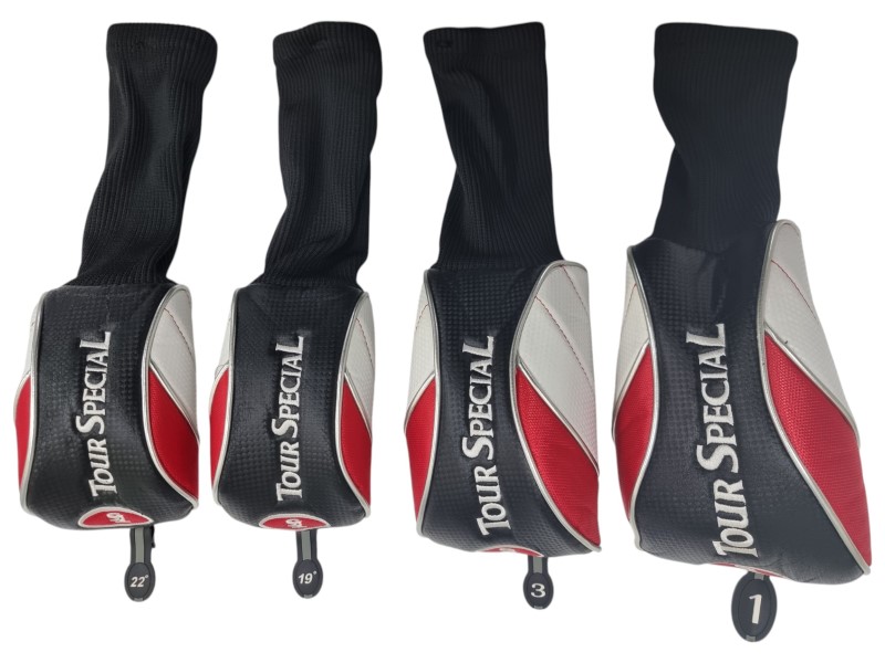 This Srixon Tour Special golf set is a comprehensive collection of clubs perfect for the avid golfer. The set includes a main driver, along with 22, 19, and 3-degree drivers, as well as a full complement of 4, 5, 6, 7, 8, 9, sand, and chipping irons. The putter completes this well-rounded set, allowing you to tackle any shot on the course. Accessories such as 4 club covers and a club head protector for the bag provide additional convenience and protection. With little sign of wear, this set is in good condition and ready to elevate your game.