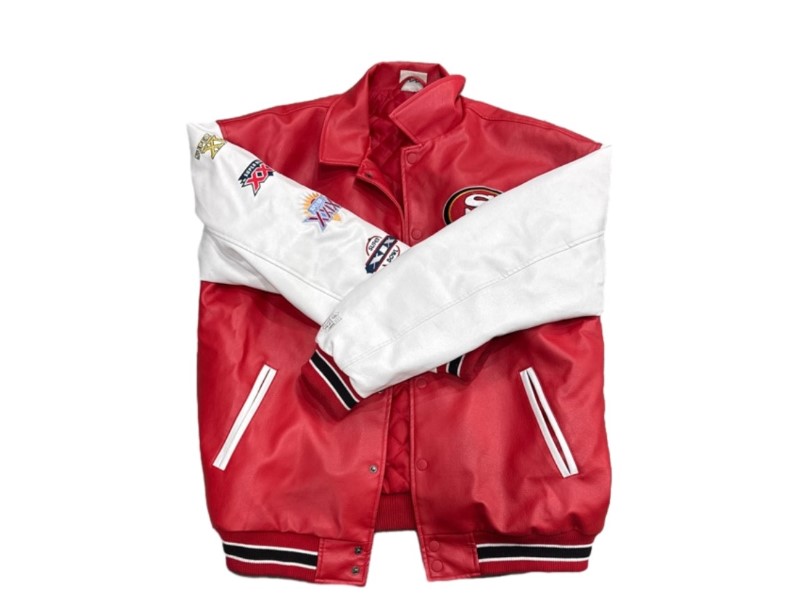 This stylish leather jacket from the NFL features a classic design that's perfect for outdoor adventures. With its durable construction and timeless appeal, it's a versatile choice for any active lifestyle. The jacket boasts a bold "5 Time Superbowl Champions" graphic, proudly showcasing the team's impressive achievements. Crafted from high-quality leather, this medium-sized jacket offers a comfortable and protective fit, making it an excellent choice for a range of outdoor activities.
