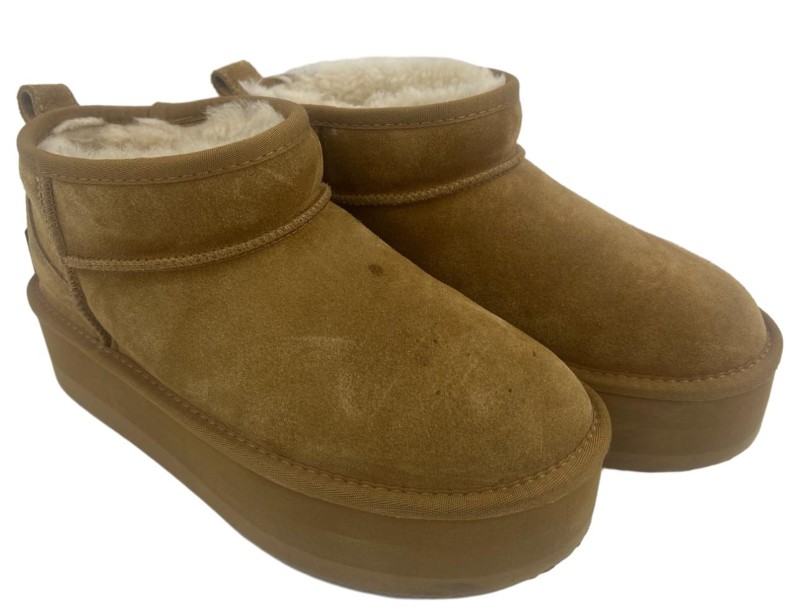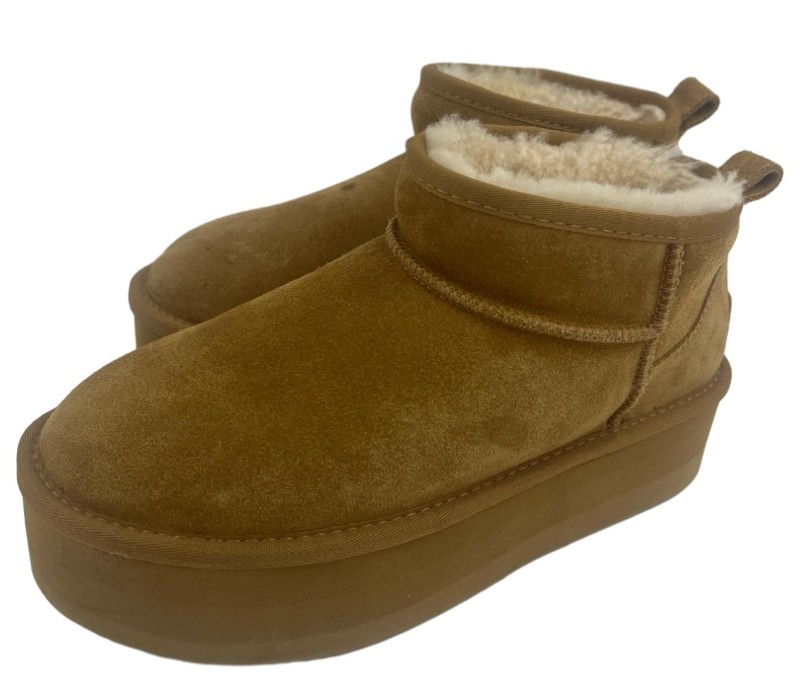 These UGG Platform Boots are a stylish and practical choice for outdoor activities. Crafted with the brand's signature sheepskin lining, they provide exceptional warmth and comfort. The platform sole offers increased stability and traction, making them ideal for navigating varied terrain. With a sleek, modern design, these boots seamlessly blend fashion and function.