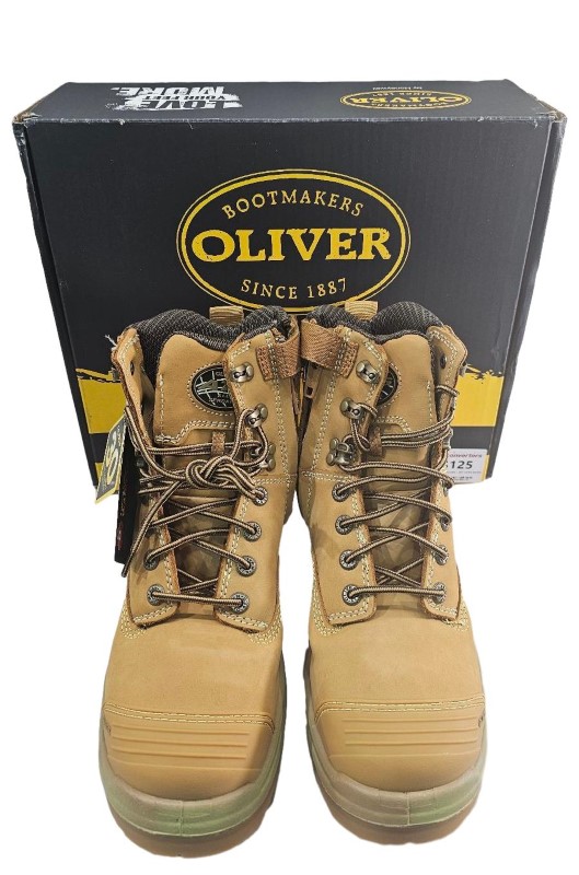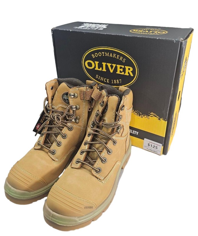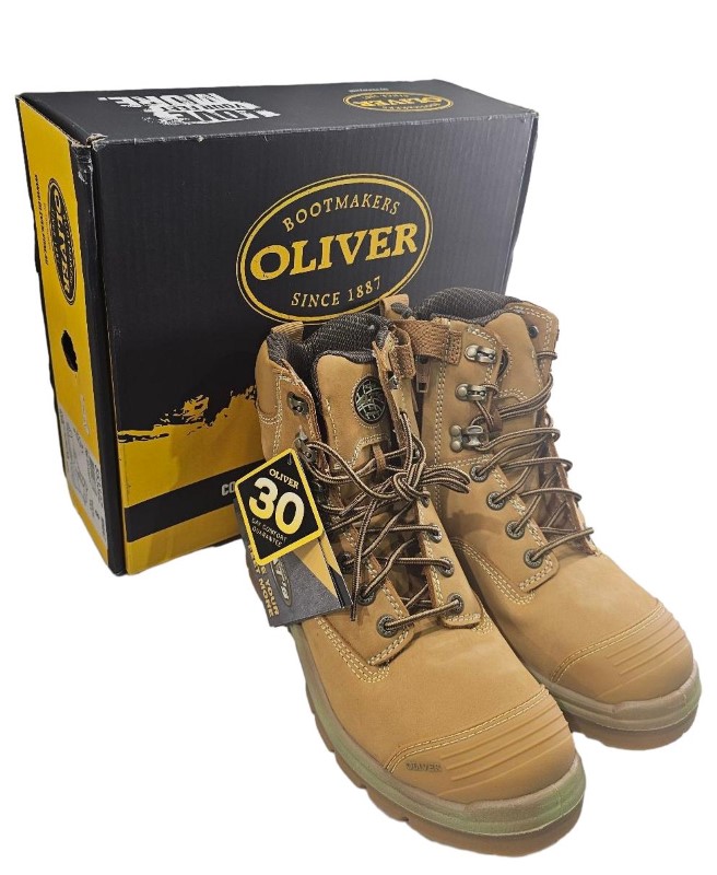 These rugged OLIVER aTS work boots are designed for outdoor adventures and tough work environments. Crafted with durable materials, they offer reliable protection and comfort for long days on your feet. The size 8 boots are in good condition, showing only minor signs of wear. They provide a secure fit and ample support to keep you stable and comfortable, no matter the terrain.