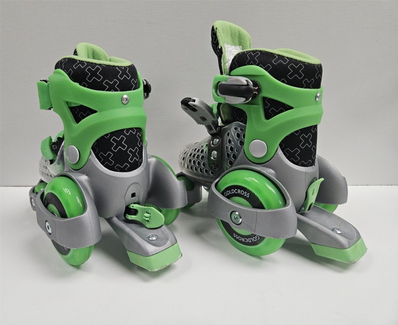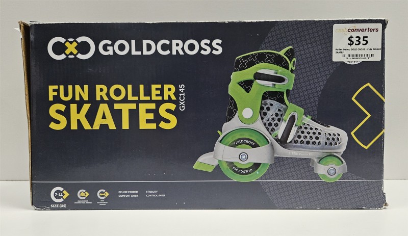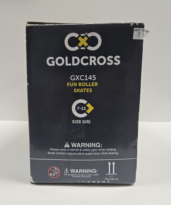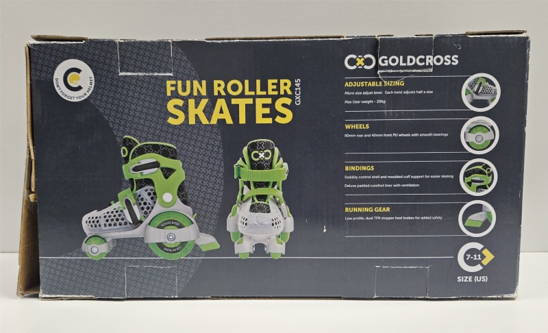 These GOLD CROSS FUN ROLLER SKATES in size 7-11 Infant are perfect for outdoor recreation. Designed for comfort and stability, they feature a durable construction that can withstand light use. With a sleek and stylish design, these roller skates will have you gliding effortlessly across any smooth surface.