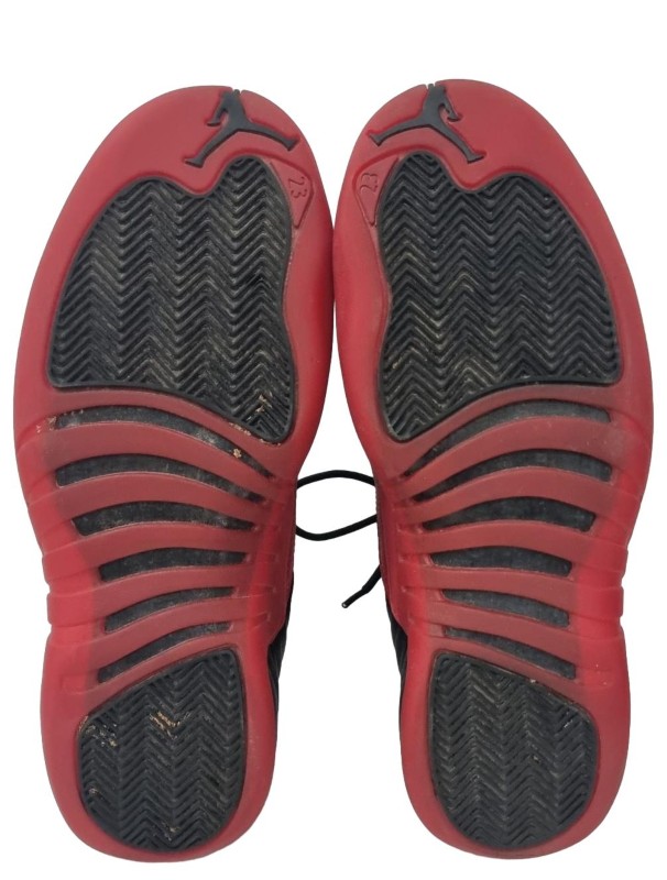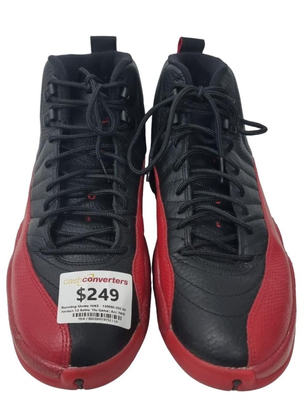 These Nike Air Jordan 12 Retro 'Flu Game' running shoes are a classic model that have been well-loved and used. With a sleek and durable design, they are perfect for outdoor recreation and running. The iconic silhouette and branding provide a stylish look, while the quality construction ensures a comfortable and reliable wear.