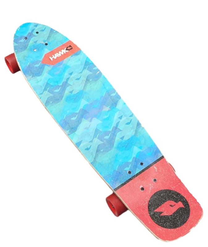 This well-used TONY HAWK skateboard is perfect for outdoor recreation and adventure. With its durable construction and classic design, it's ready to take on any terrain. Whether you're a seasoned skater or just starting out, this board will provide a thrilling and enjoyable ride.