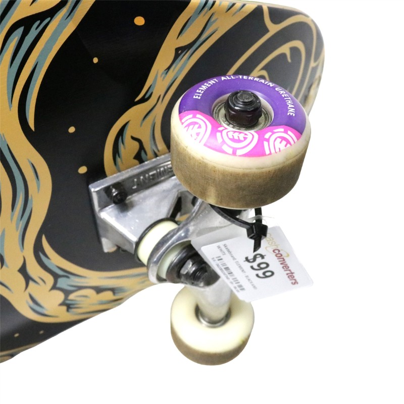 This stylish ELEMENT skateboard in black and white is a great choice for outdoor recreation. With its durable construction and eye-catching design, it's sure to turn heads as you cruise around. The board is in good condition, showing only minor signs of wear from previous use. Whether you're a seasoned skater or just starting out, this ELEMENT skateboard is a reliable and versatile option for your next adventure.