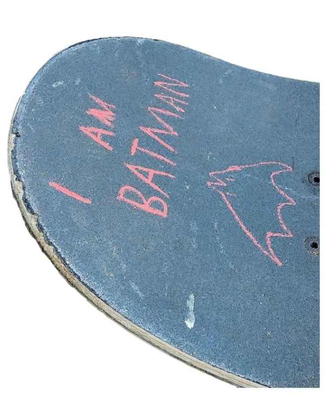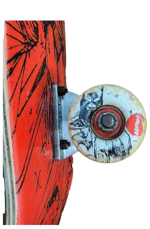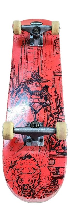 This Almost skateboard in the Batman design is a reliable and versatile option for outdoor recreation. With its sturdy construction and eye-catching graphics, it's sure to turn heads on the streets or skatepark. Despite signs of previous use, this skateboard remains in working condition, ready to provide thrilling rides and memorable experiences.
