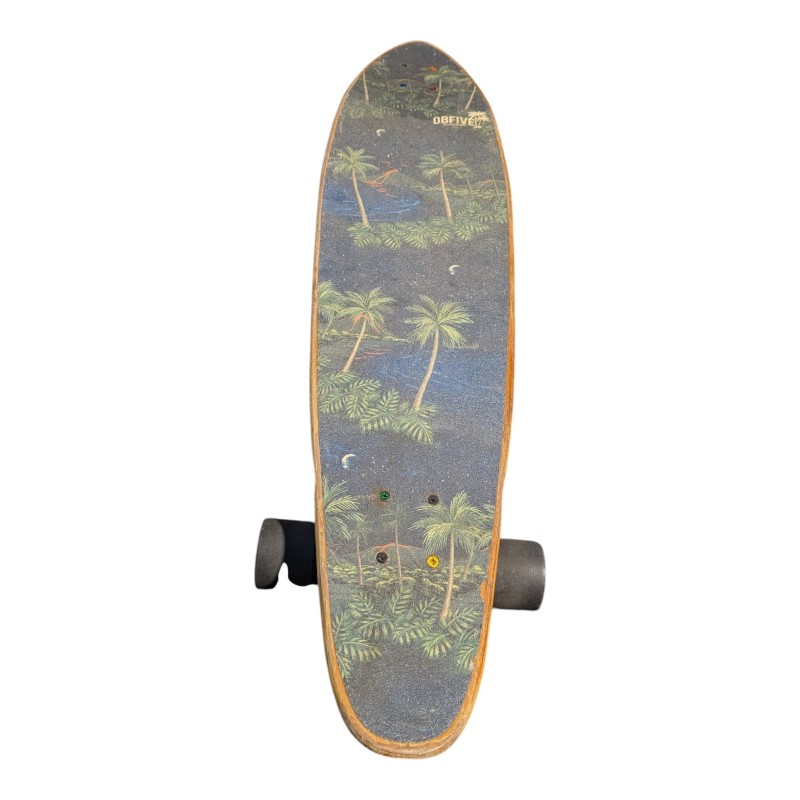This OBFIVE skateboard is a great option for outdoor recreation. It is in good condition with little sign of wear, making it a reliable choice for riding. The sturdy construction and smooth performance ensure a comfortable and enjoyable experience on the streets or at the skatepark.