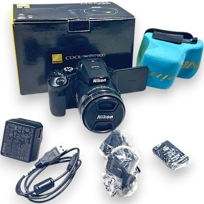 This Nikon Coolpix p900 compact digital camera features a 16.0 megapixel sensor for capturing high-quality images. With its versatile capabilities, you can enjoy taking detailed photos and videos with ease. The camera comes with the essential accessories, including the original box, charger, battery, and strap, allowing you to start using it right away.