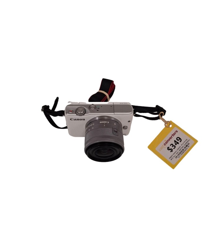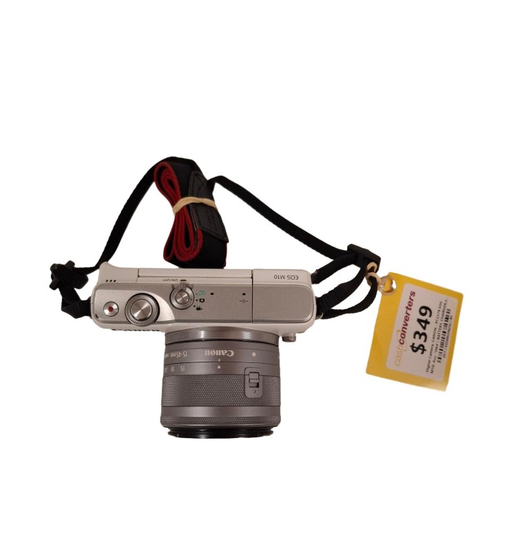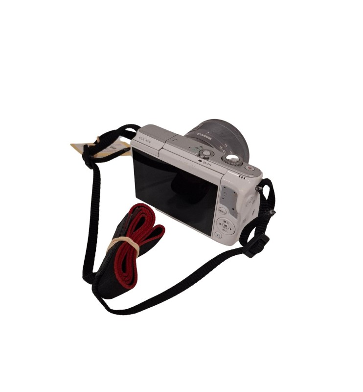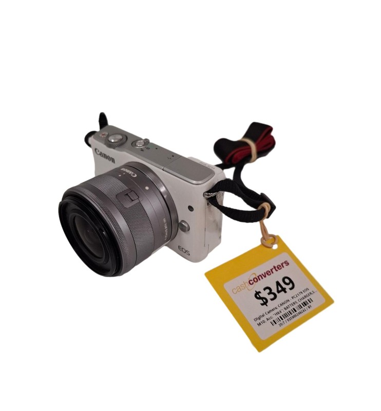 This compact Canon EOS M10 digital camera features an impressive 18.0 megapixel sensor, delivering high-quality images. Despite some light cosmetic wear, the camera remains fully functional and ready to capture your memories. The included battery, charger, and strap provide everything you need to get started.