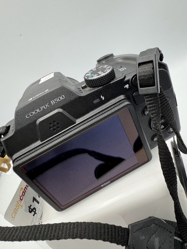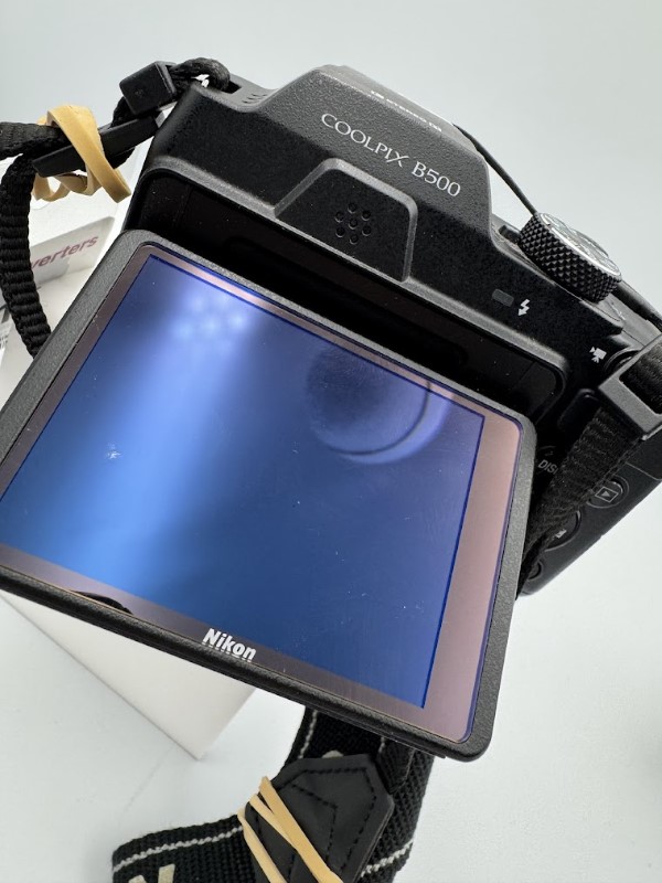 This Nikon COOLPIX B500 compact digital camera is a versatile and user-friendly option for capturing high-quality photos and videos. With its 16-megapixel sensor, 40x optical zoom, and advanced features like optical image stabilisation, you can enjoy sharp, clear images even in challenging conditions. The intuitive controls and tilting LCD screen make it easy to frame your shots and review your captures. This camera is in very good condition, with only minor cosmetic wear. Uses AA batteries for operation.