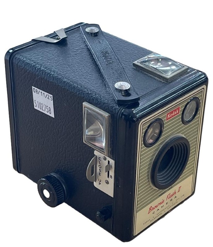 This vintage KODAK BROWNIE FLASH 2 film camera is a compact and portable option for capturing timeless memories. Its classic design and straightforward controls make it easy to use, while the built-in flash ensures great results even in low-light conditions. Whether you're a seasoned photographer or a newcomer to the craft, this camera offers a fun and rewarding shooting experience.