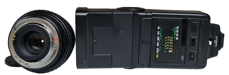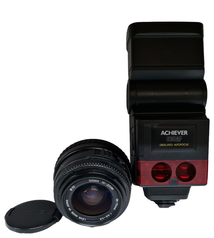 Accessories: Bag, Lens (Sigma 1A-Zoom 28-70 mm; 1:3.5-4.5), Flash (Achiever 630Af), Manual, Battery, Lens Cleaner & Blower Brush