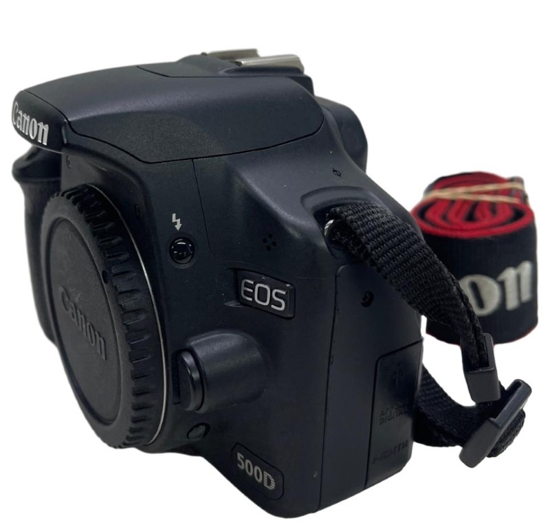 This Cannon EOS 500D DSLR camera is a versatile and capable imaging device. With its 15.1-megapixel sensor, it can capture detailed, high-quality photos and videos. The included Canon EF-S 18-55mm and 55-250mm lenses provide a useful focal range for a variety of shooting scenarios. The camera functions well, though it shows some light cosmetic wear from previous use.