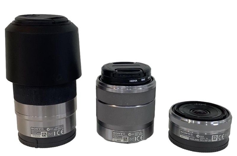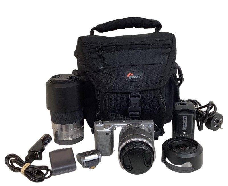 Accessories: Bag, Charger, 2X Batteries, Sony Sel1855 18-55mm Lens, Sony Sel16f28 Lens, Sony Sel55210 Lens, Sony Hvl-F7s Flash, 8GB Sd Card, 2Xdust Cloths
