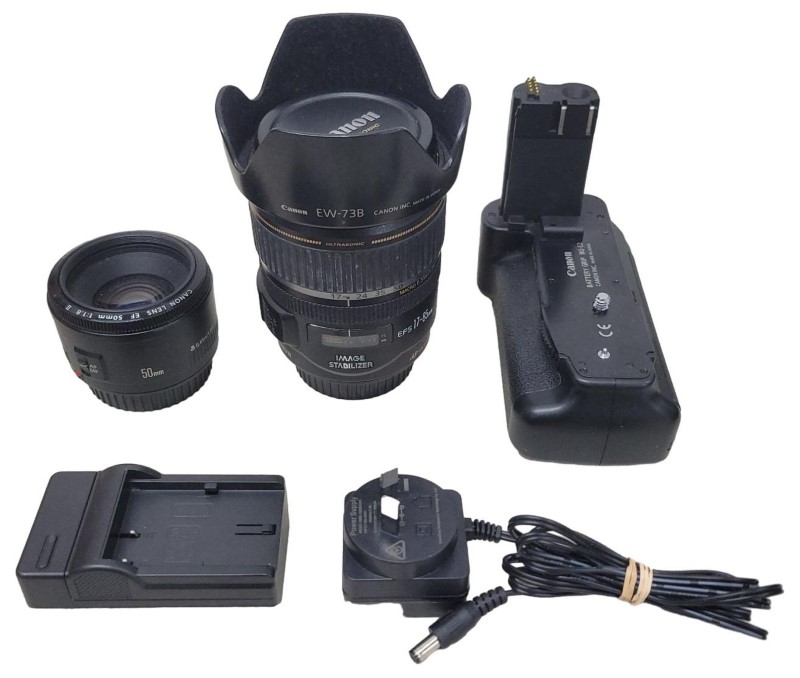Accessories: Efs 17-85mm & Ef 50mm Lens, Chgr, Battery, Batt Grip, Bag
