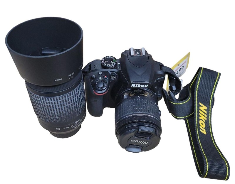 Accessories: Lens#1: 18-55mm, Lens#2: 55-200mm, Charger, Battery, Camera Case, Lens Cover & Manual.