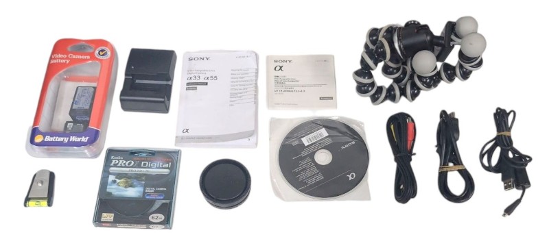 Lens (Sony 3.5-6.3/18-250), Strap, Bag, Usb Cables, Composite Cable, Installation Disc, Lens Covers, 2 Batteries, Stand And Manual