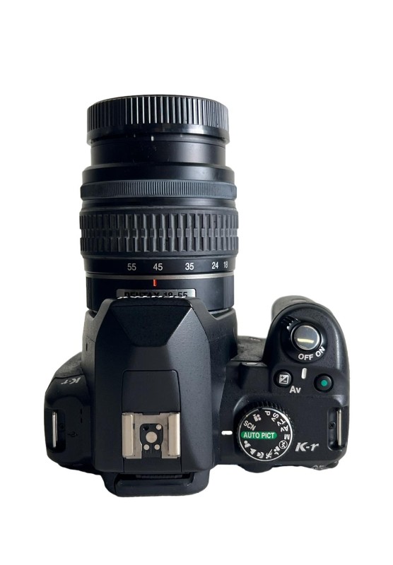 This PENTAX K-r DIGITAL CAMERA is a versatile DSLR camera with a detachable lens. Featuring a range of advanced functions and settings, it delivers exceptional image quality and performance. The camera comes with a power cord, battery, charger, instructions, and a protective bag, providing everything you need to capture stunning photos.