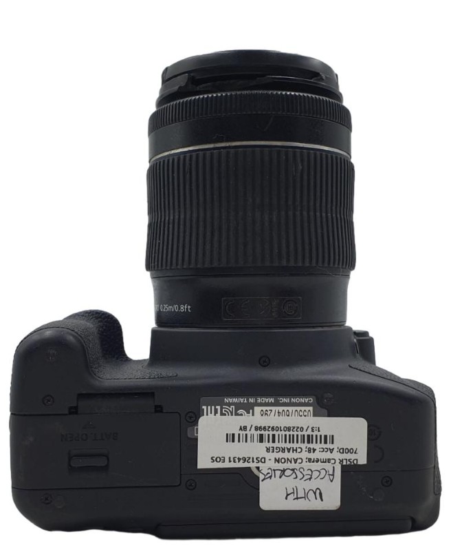 This Canon EOS 700D DSLR camera is a versatile and capable imaging device, perfect for enthusiasts and aspiring photographers. With its 18-megapixel sensor, you can capture stunning, high-quality images with ease. The included CHARGER accessory ensures you can keep the camera powered and ready to shoot. While the item does show some light cosmetic wear, including a scratch to the lens eye and a crack to the edge of the lens, it remains fully functional. Please note that a battery is not included.