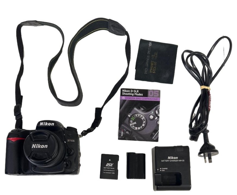 This Nikon D7000 DSLR camera is a versatile and capable imaging tool. With a 16.0 megapixel sensor, it delivers high-quality photos with excellent detail and clarity. The included Nikkor 50mm 1:1.8 D lens provides a classic focal length and aperture for a range of photographic applications. Additional features like lens filters, a charger, extra battery, and a camera bag make this an all-in-one photography setup.