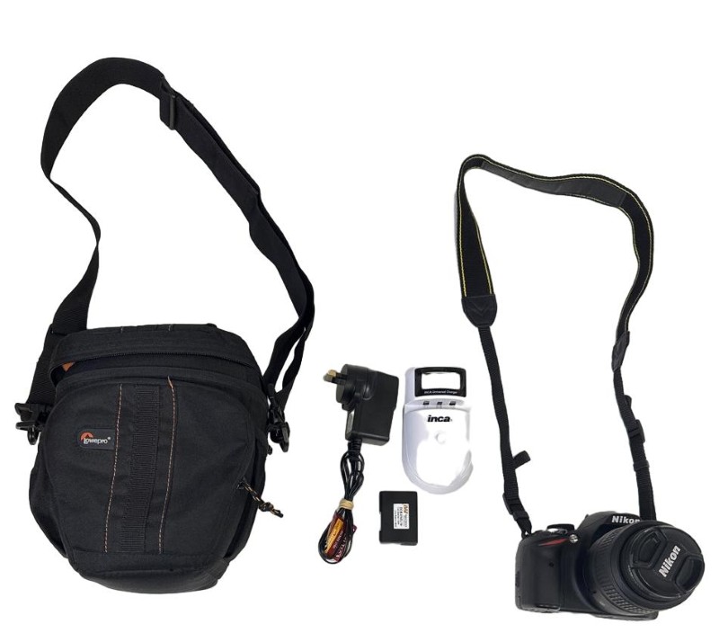 This NIKON D3200 DSLR camera with an AF-S NIKKOR 18-55mm 1:3.5-5.6G lens is a versatile and capable photographic tool. With a 21.0 MP sensor, it delivers high-quality images with excellent detail and clarity. The included accessories, such as the bag, charger, battery, and charger dock, make this camera ready to use right out of the box.