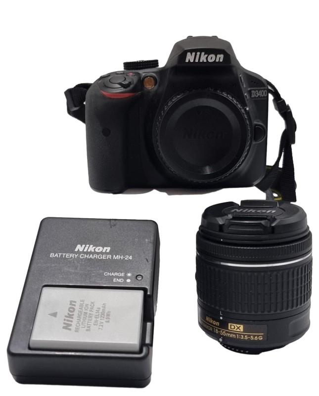 This Nikon d3400 DSLR camera is a versatile and capable imaging tool. It features a 24.2-megapixel DX-format CMOS sensor and EXPEED 4 image processor, delivering exceptional image quality and low-light performance. The camera offers a range of advanced features, including full HD video recording, a 3-inch LCD display, and a lightweight, ergonomic design for comfortable handling. Whether you're a budding photographer or an experienced enthusiast, this Nikon DSLR is an excellent choice for capturing stunning photos and videos.