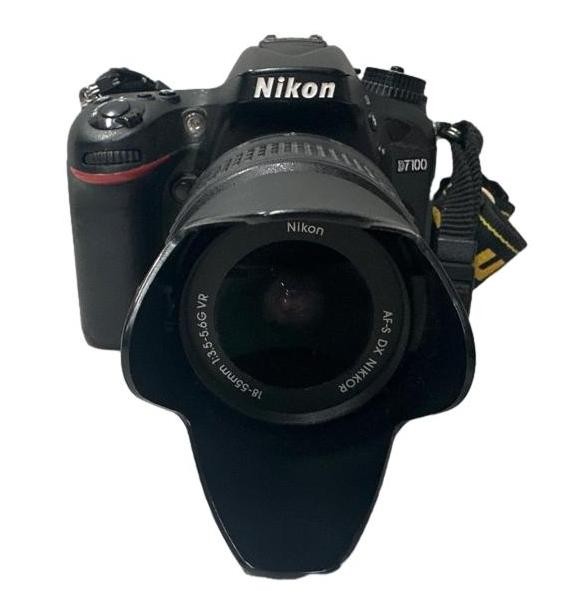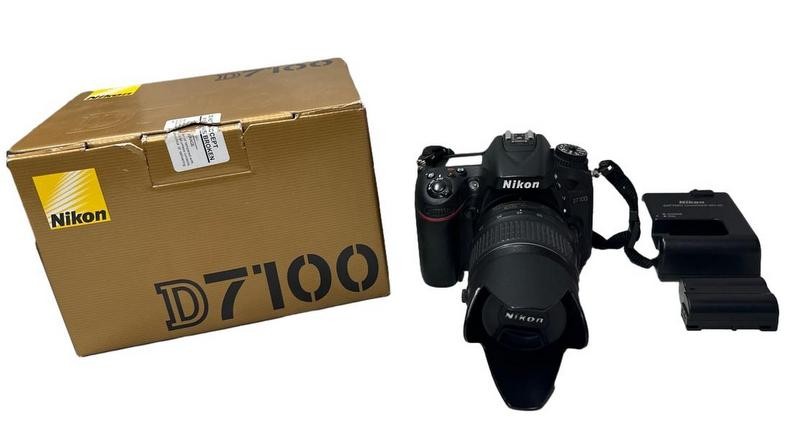 This Nikon D7100 DSLR camera is a versatile and capable model that delivers impressive image quality. With a 24.1-megapixel DX-format CMOS sensor, it captures detailed, vibrant photos and Full HD 1080p videos. The camera features a durable weather-sealed body, a large optical viewfinder, and advanced autofocus for reliable performance. The included 18-55mm lens provides a useful focal range for a variety of everyday shooting situations.