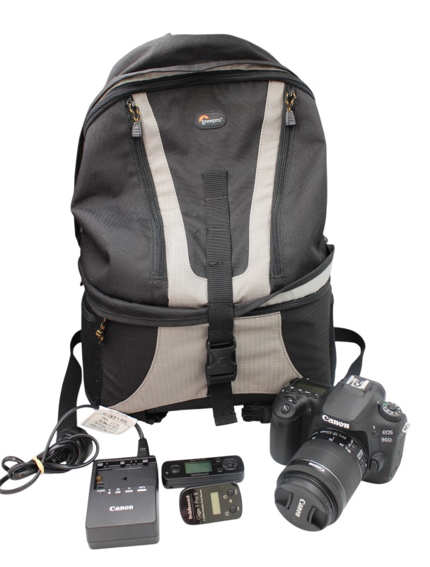 Accessories: Backpack Bag, Timer Remote, Lens, Charger