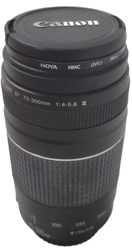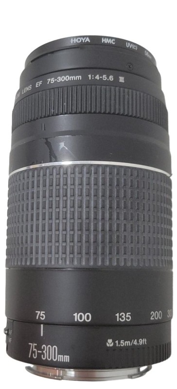 This Canon EF 75-300mm 1:4-5.6 III lens is a versatile telephoto zoom lens that offers a focal length range of 75-300mm. Its compact and lightweight design makes it easy to carry, while the 4-5.6 maximum aperture range provides good low-light performance. This lens is suitable for a variety of photographic applications, from portraits to wildlife and sports photography.