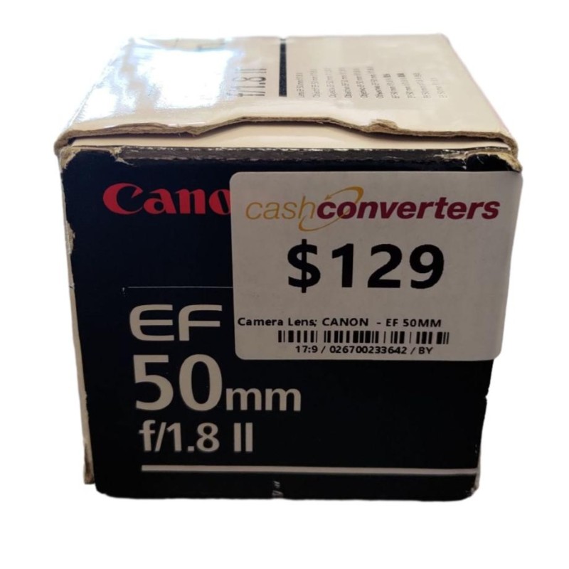 This Canon EF 50mm f/1.8 II lens is a versatile and affordable prime lens that delivers excellent image quality. With a bright maximum aperture of f/1.8, it's ideal for low-light photography, creating beautiful bokeh effects, and capturing sharp, detailed portraits. The compact, lightweight design makes it easy to carry and use. While it shows some light cosmetic wear, the lens functions as expected.