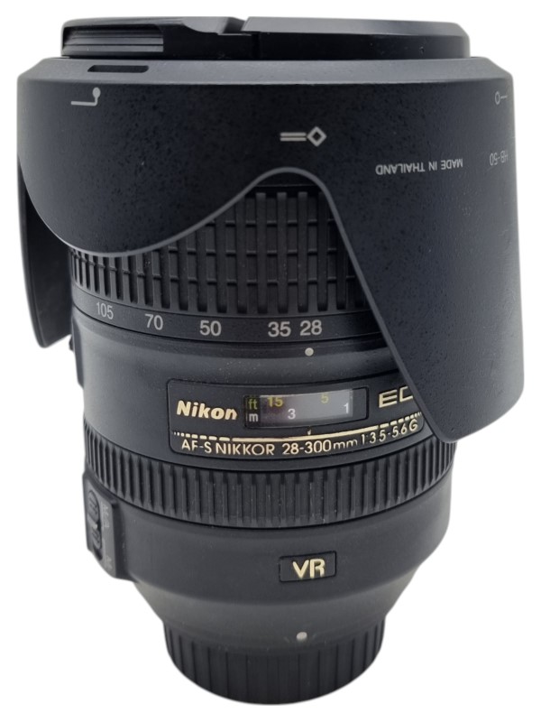 This Nikon 28-300mm 1:3.5-5.6 G VR ED IF zoom lens is a versatile and high-performing optic. Its wide focal range allows you to capture a variety of subjects, from wide-angle landscapes to distant telephoto shots. The VR (Vibration Reduction) feature helps to stabilise images, delivering sharp results even in low light or when handholding the camera. The lens construction includes ED (Extra-low Dispersion) glass elements to minimise chromatic aberration and deliver exceptional image quality.