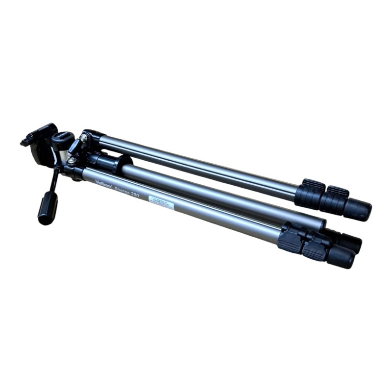 This sturdy VELBON SHERPA 200 tripod is a reliable companion for your photography adventures. Crafted with quality materials, it offers stability and versatility to capture stunning images. The tripod's compact design makes it easy to transport, while its adjustable legs and head provide precise control over your camera's positioning. Despite some minor cosmetic wear, this tripod remains in excellent working condition, ready to support your creative vision.