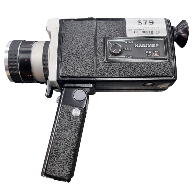 This vintage HANIMEX LOADMATIC MPF 830 SUPER 8 video camera is a classic piece of equipment that still functions well despite some light cosmetic wear. With its straightforward operation and reliable performance, it's a great choice for capturing timeless moments on film. Whether you're a budding filmmaker or a nostalgic enthusiast, this camera offers a unique and authentic shooting experience.