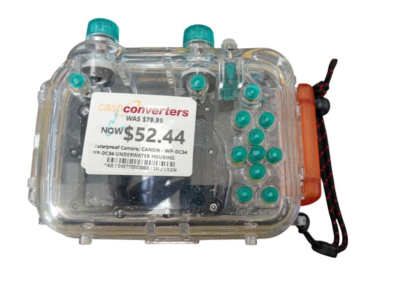 This Canon WP-DC34 underwater housing is a waterproof camera accessory designed to protect your camera while capturing adventures in the water. With its durable construction, it allows you to take your camera to depths up to 40 metres, enabling you to capture stunning underwater shots and videos. The housing features a compact and lightweight design, making it easy to transport and use. It's an excellent choice for water sports enthusiasts, divers, and anyone seeking to expand the capabilities of their camera.