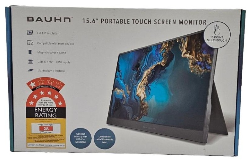 This Bauhn 15.6 Portable Touch Screen Monitor is a versatile and compact display solution. With a 1080P resolution, it delivers crisp and clear visuals for a range of computing tasks. The touchscreen functionality adds an intuitive and interactive element, making it ideal for on-the-go productivity or entertainment. Compact and lightweight, this monitor is easy to transport and set up, making it a convenient choice for work, study, or travel.