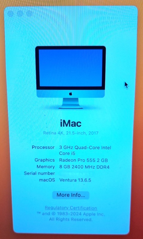 CPU Type: Intel Core i5 3GHz Quad Core