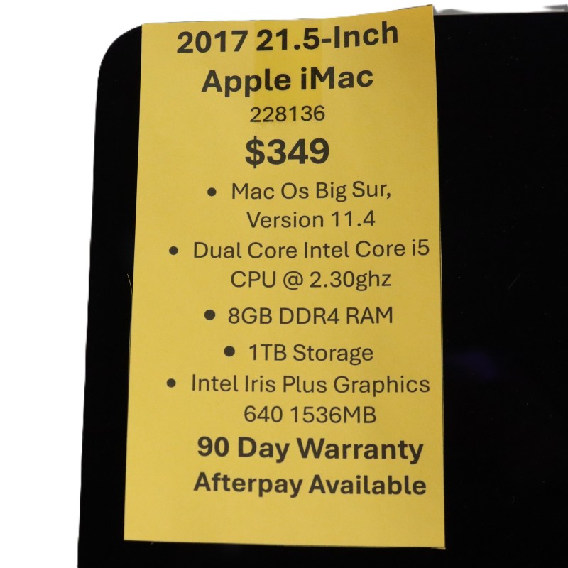 This sleek and compact Apple iMac 21.5-inch from 2017 is a powerful all-in-one desktop computer that delivers impressive performance and stunning visuals. With its vibrant 21.5-inch display, cutting-edge hardware, and user-friendly macOS operating system, this iMac is a reliable and versatile choice for everyday computing tasks, media consumption, and light creative work. Despite its age, this model remains a capable and efficient machine that can handle a wide range of applications and everyday needs.