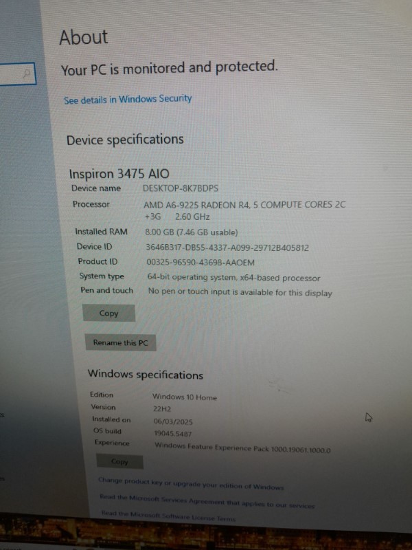 CPU Type: AMD A6-9225 Radeon R4 2.60GHz