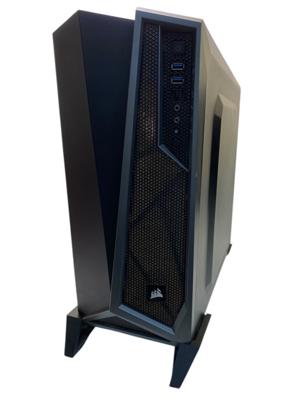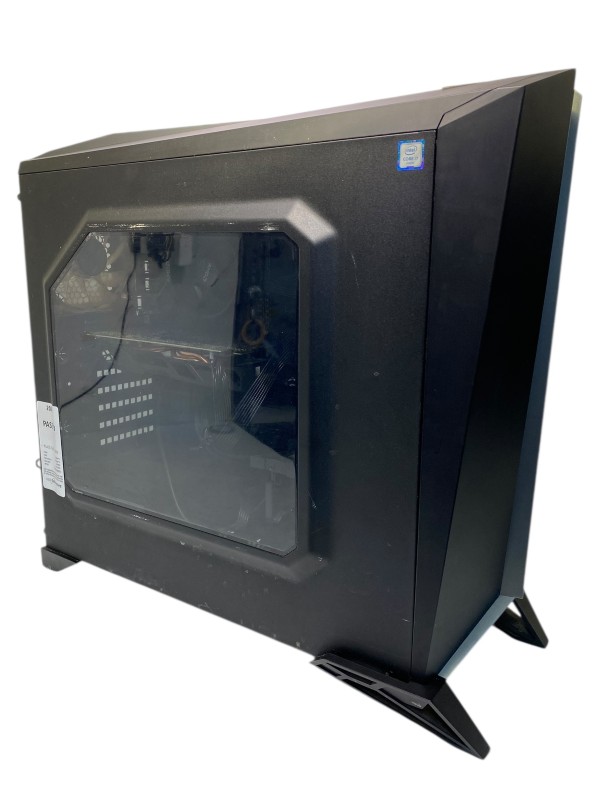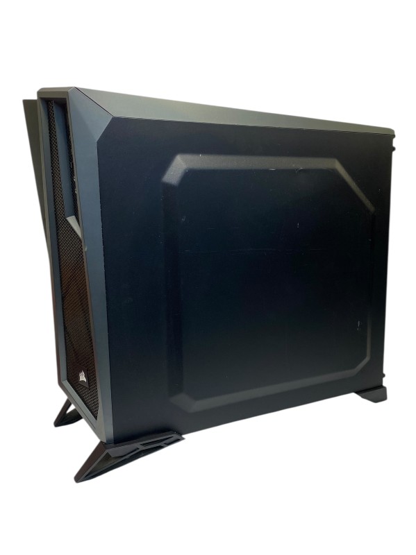 This unbranded desktop PC is powered by an AMD Ryzen 5 processor clocked at 3.6GHz, complemented by 16GB of RAM and a 1TB hard drive. While it doesn't have dedicated graphics, the integrated AMD Radeon Pro 580X GPU with 8GB of video memory should provide capable performance for everyday tasks and light gaming. However, the exterior of the case shows visible signs of wear and tear, including dust and scratches, as depicted in the provided images.